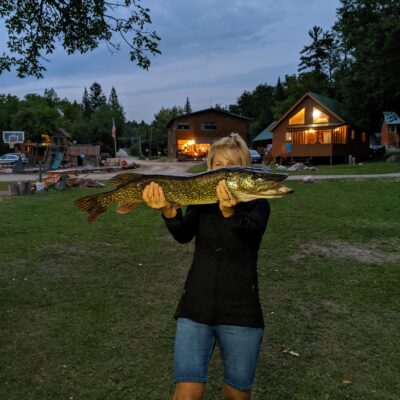 Sandy F caught the awesome 34″ Northern off the dock last night. Great job.